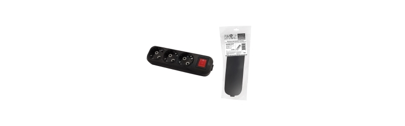 - Колодка розеточная 3 гнезда 2П+3 c выключателем 16А 250В черная серии "Народная"