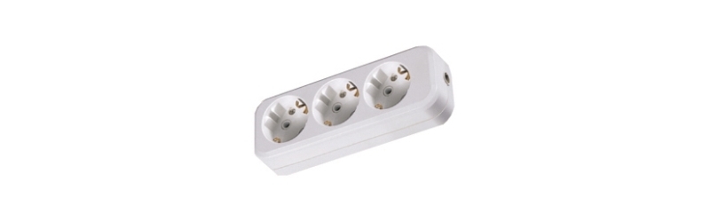 - Колодка розеточная 3 гнезда с/з 16А 250В белая TD
