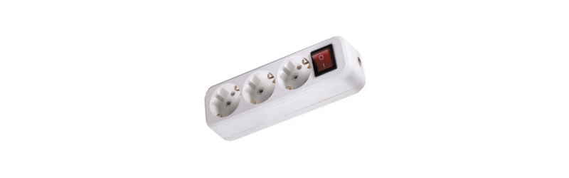 - Колодка розеточная 3 гнезда с/з c выключателем 16