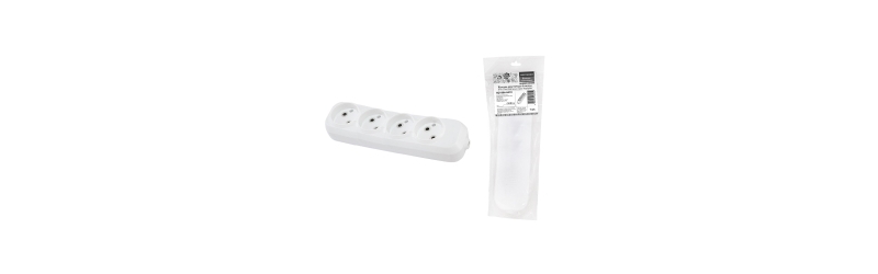 - Колодка розеточная 4 гнезда 2П б/з 10А 250В белая серии "Народная"