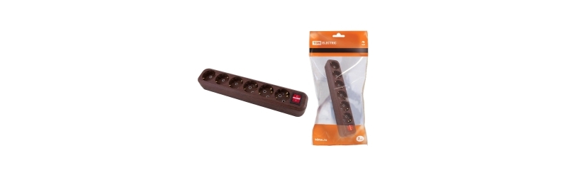 - Колодка розеточная 6 гнезд 2П+3 с выключателем16А 250В "Эко" (бук) TDM